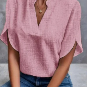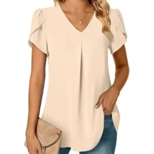 Summer Women’s V-neck Petal Sleeve Shirt Female Loose Solir Color Short Sleeve Pullover Blouse Camisas Femininas Elegantes