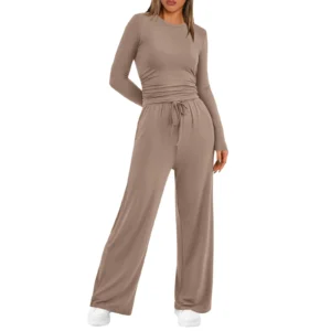 Autumn New Women 2 Piece Outfits Long Sleeve O-neck Pullover Tops Tee Shirts Wide Leg Pants Matching Sets conjuntos femininos