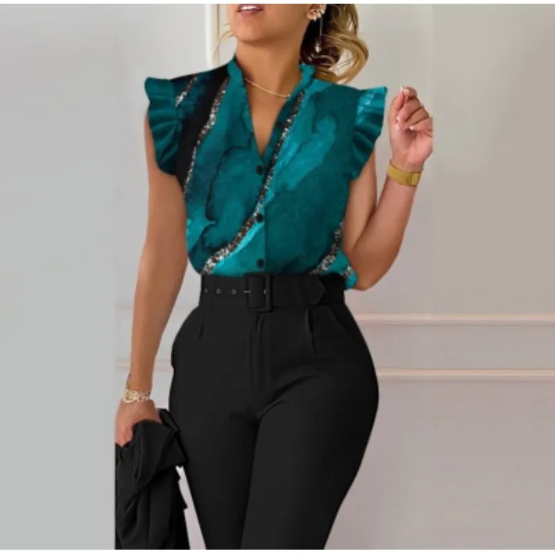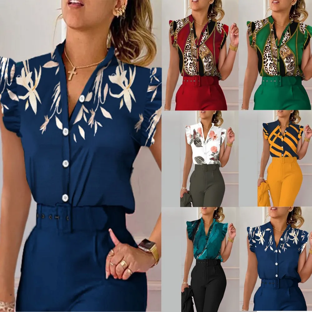 Seja o primeiro a avaliar “Women Blouse Fashion Shirts 2024 Summer V-neck Button Petal Sleeve Printed Shirt Female Tops Blouses Camisa Social Feminina” Cancelar resposta